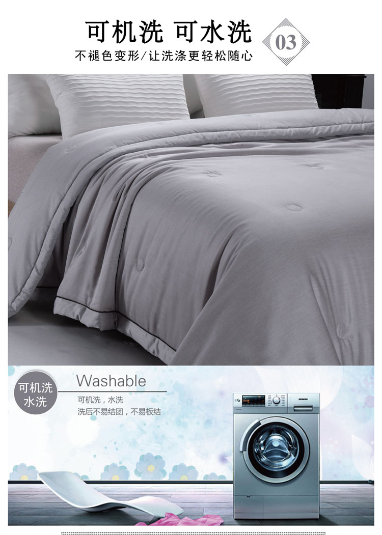 这是一款采用纯色——香槟色的竹炭夏被,档次感较强,吸湿透气性能好,手感温糯细腻,使用起来柔软舒适。采用了点缝的工艺,针脚细密,不管是外观还是使用体验,都能满足客户的要求。